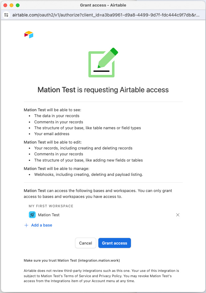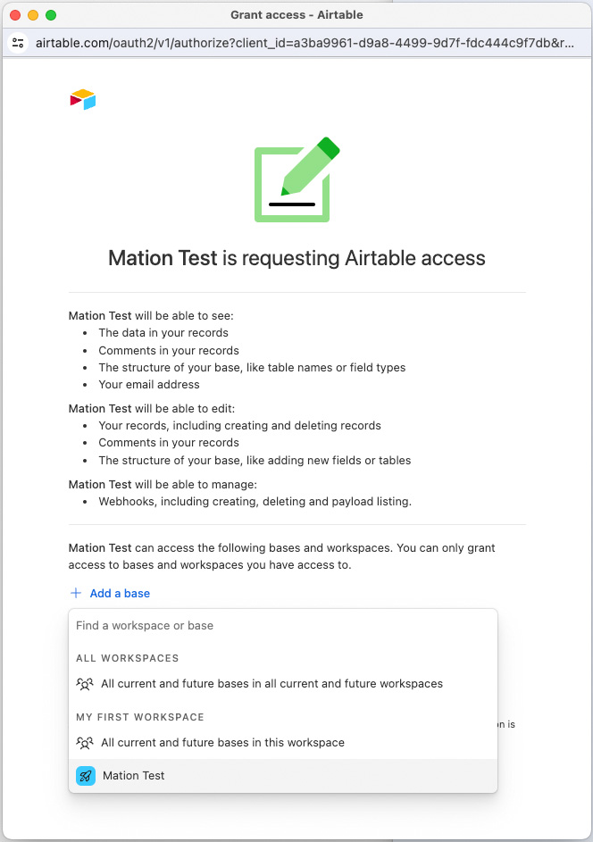 Start using your new Airtable connection with Mation.