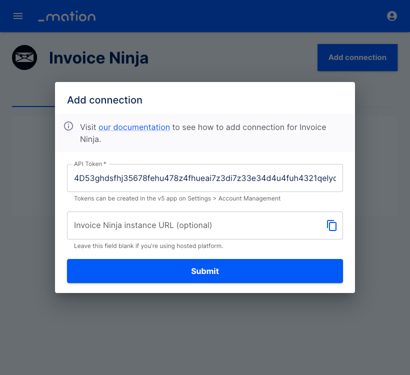 Start using your new Invoice Ninja connection with Mation.