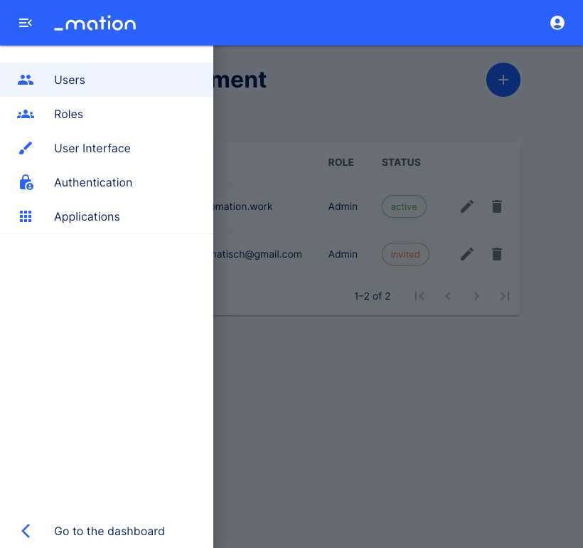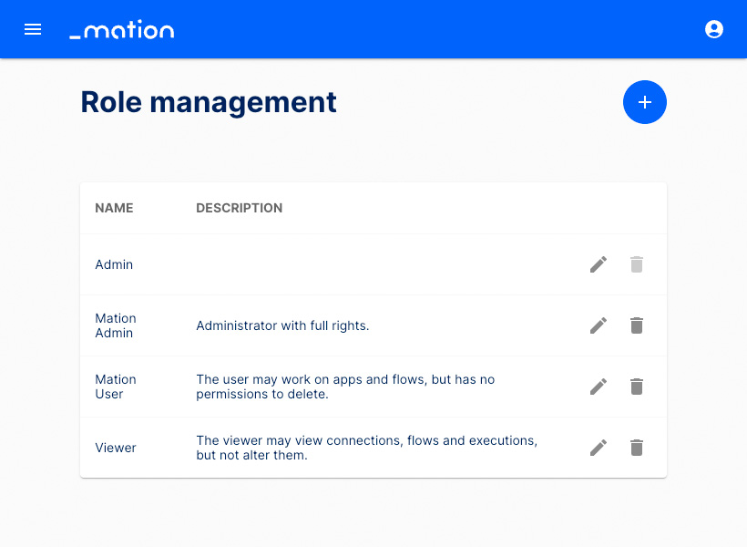 Different roles may be assigned to an array of users of your Mation application instance. Click the Create role button.